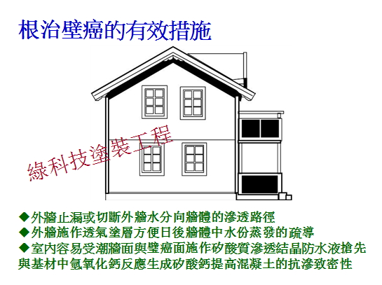 1.對於已經璧癌的建築,建議切斷水分向牆體滲透的通道